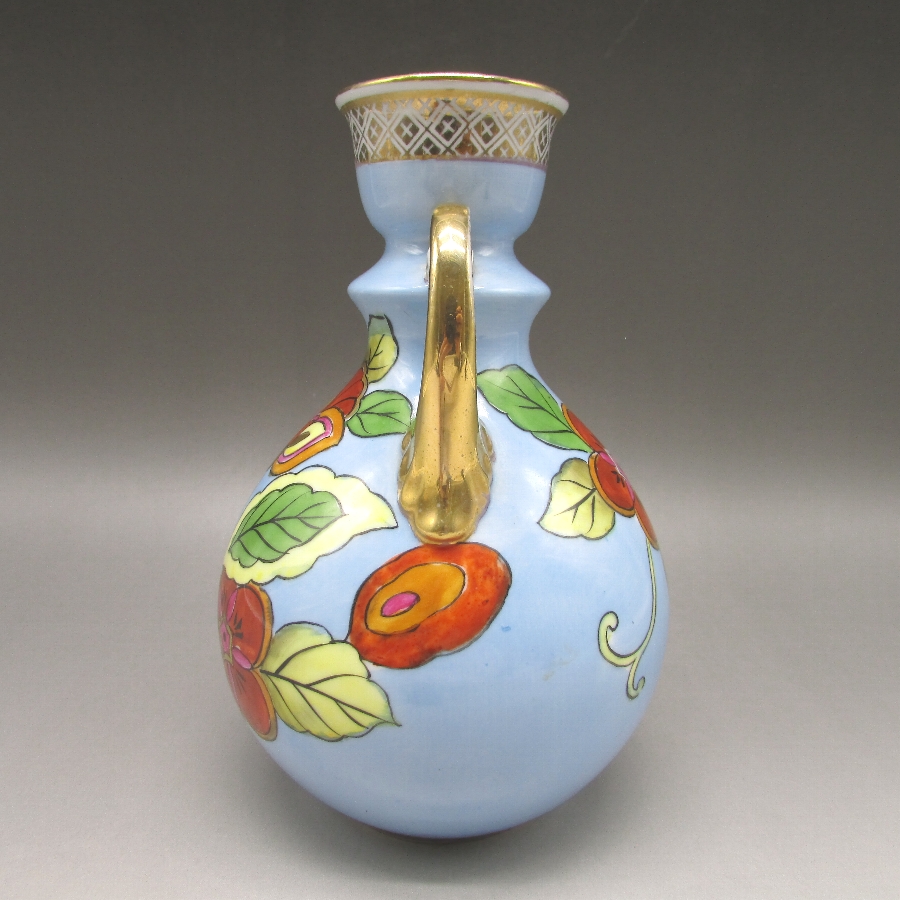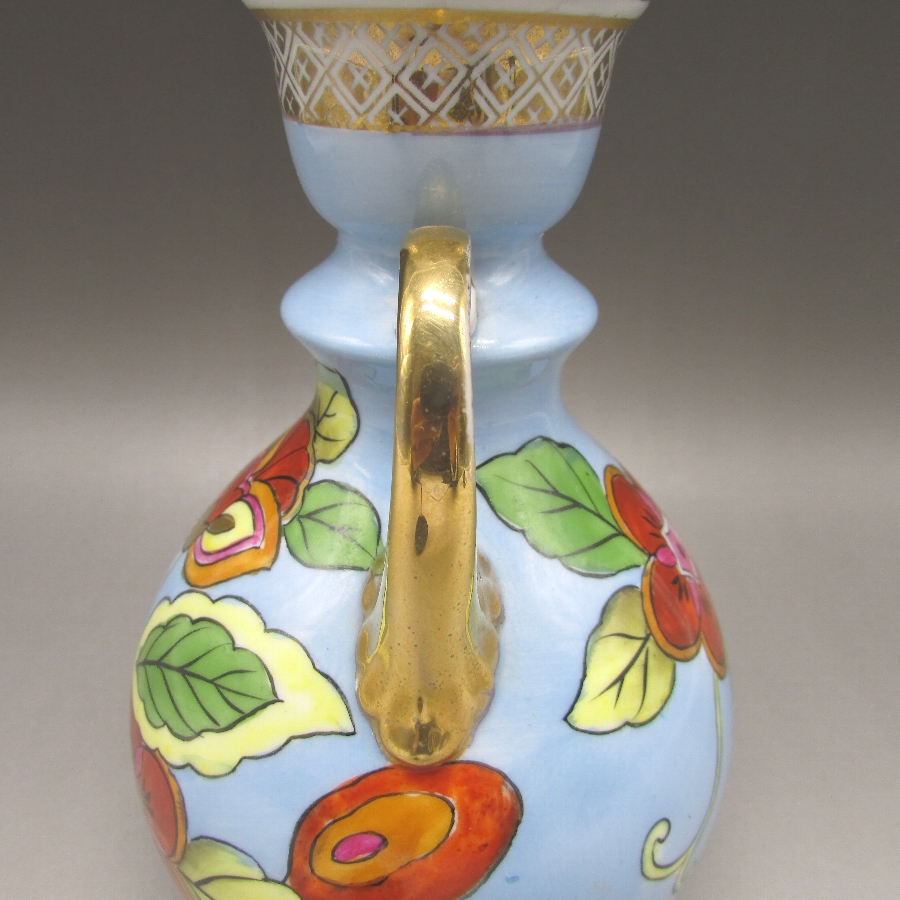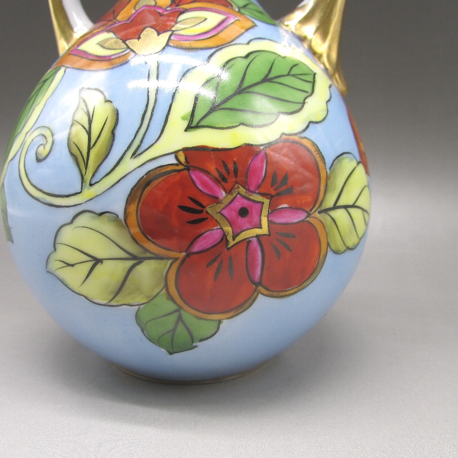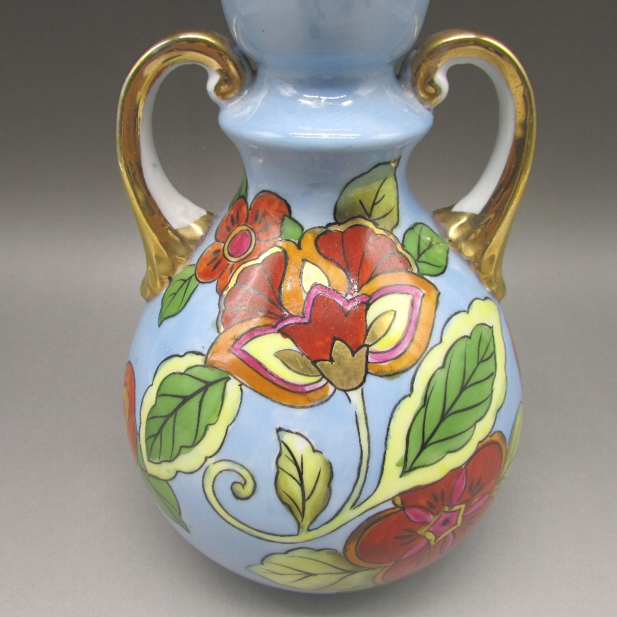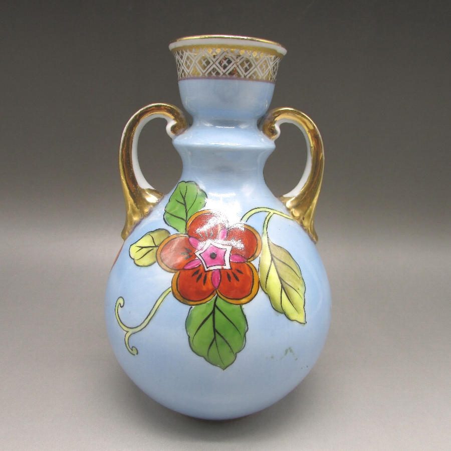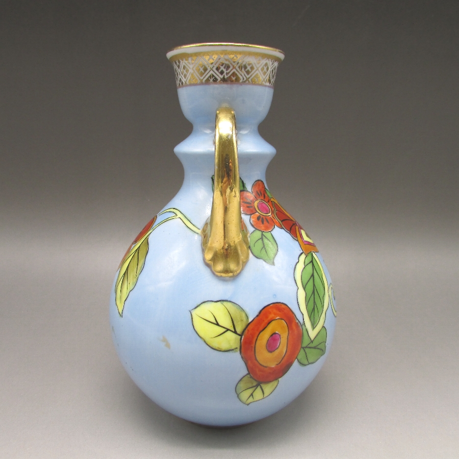 オールドノリタケのアールデコ花文把手付花瓶です。1921年頃~1941年頃にアメリカに輸出され、約100年の時を経て日本に里帰りしてきました。「オールド・ノリタケのアール・デコ」(井谷善惠/2008・平凡社)、「Collecting