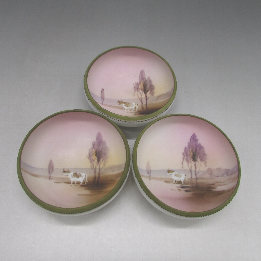 オールドノリタケの牛風景文ソルトボウルです。1911年頃~1921年頃にアメリカに輸出され、約100年の時を経て日本に里帰りしてきました。