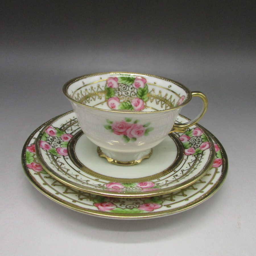 オールドノリタケ 金盛り薔薇文トリオ