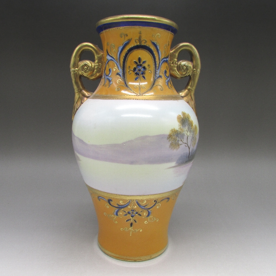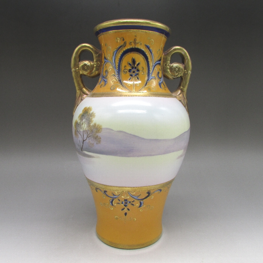 オールドノリタケ 風景文花瓶一対