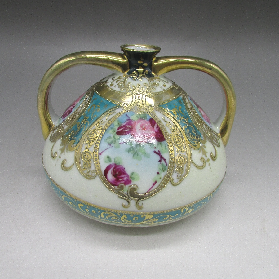 オールドノリタケの金盛り花文花瓶です。1891年頃~1921年頃にアメリカに輸出され、約100年の時を経て日本に里帰りしてきました。「The Collector’s