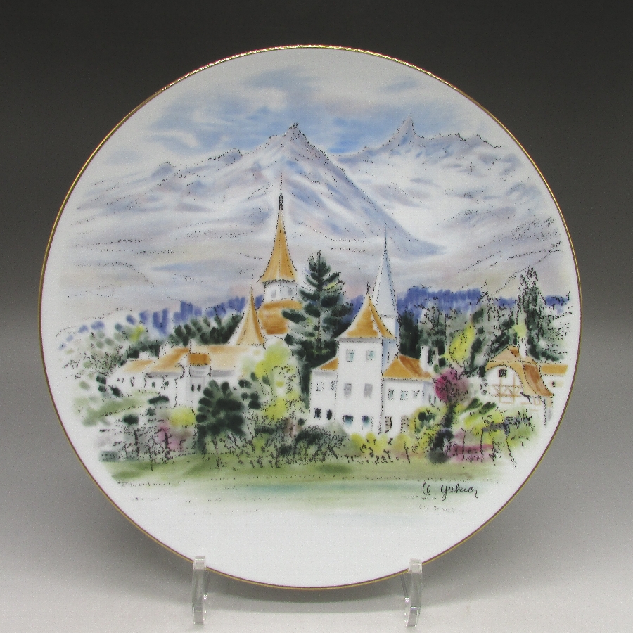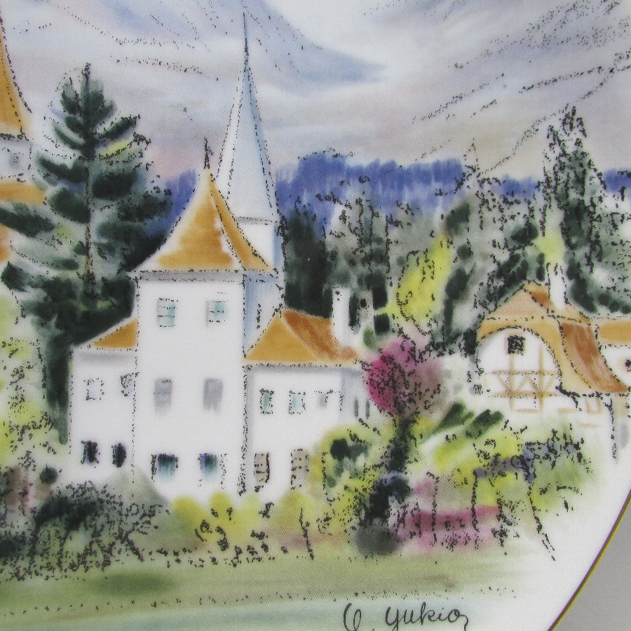 u.yukioサイン入りアルプス風景文飾皿の画像