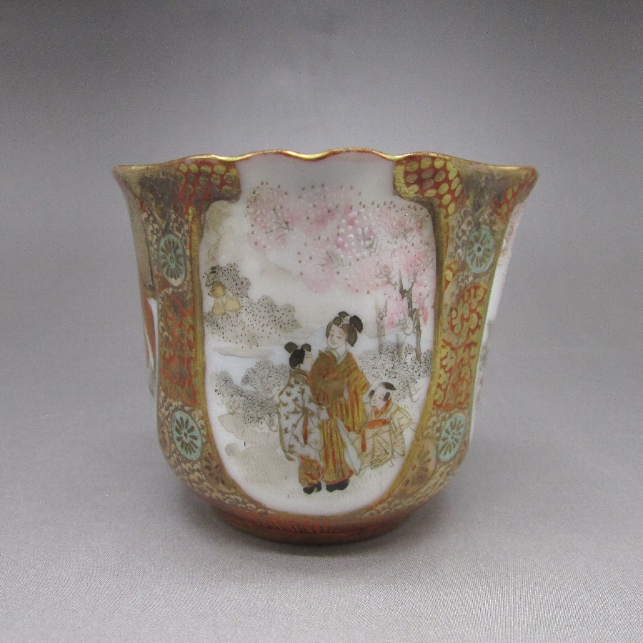 九谷焼 綿谷 窓絵人物文洋茶碗