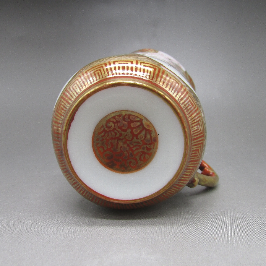 九谷焼・綿谷が主に欧米諸国向けに作陶した花鳥文花瓶です。九谷焼は日本の伝統的美意識や技法を引き継いだやきもの になります。綿谷平兵衛(1864-1921年)は綿谷平八の子で1882年、横浜に支店を出し九谷焼の貿易商として各国と盛んに貿易し、国産である九谷焼の真価を内外に高めることに努めました。国内は言うまでもなく、スペイン、アメリカ、ポーランド、ベルギーなどの万国博覧会で、金・銀牌を受賞しました。一方で、1906年、井出 善太郎、石崎蕃らと九谷原石破砕会社を設立し、1908年から寺井町湯谷で操業を始め、九谷焼の産業基盤を築くのに貢献しました。