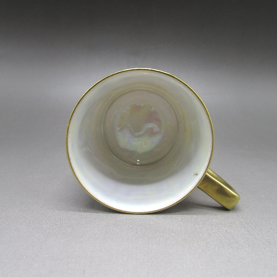 *ラスター彩:1920年頃のアールデコ期の作品に多く用いられた彩色技法で、ラスター(絵付けする道具の一種)を焼くことで金属状の光沢や真珠状の虹が生じる為に非常に綺麗な仕上がりになります。ラスター彩は9世紀にメソポタミアで生まれ、中近東を中心に広まりました。ラスター彩は、その美しい輝きから「イスラーム陶器の華」とも称され、世界中の陶磁器愛好家を魅了しています。