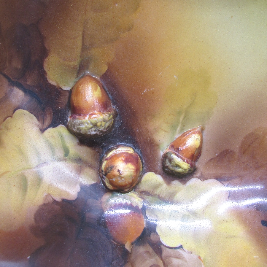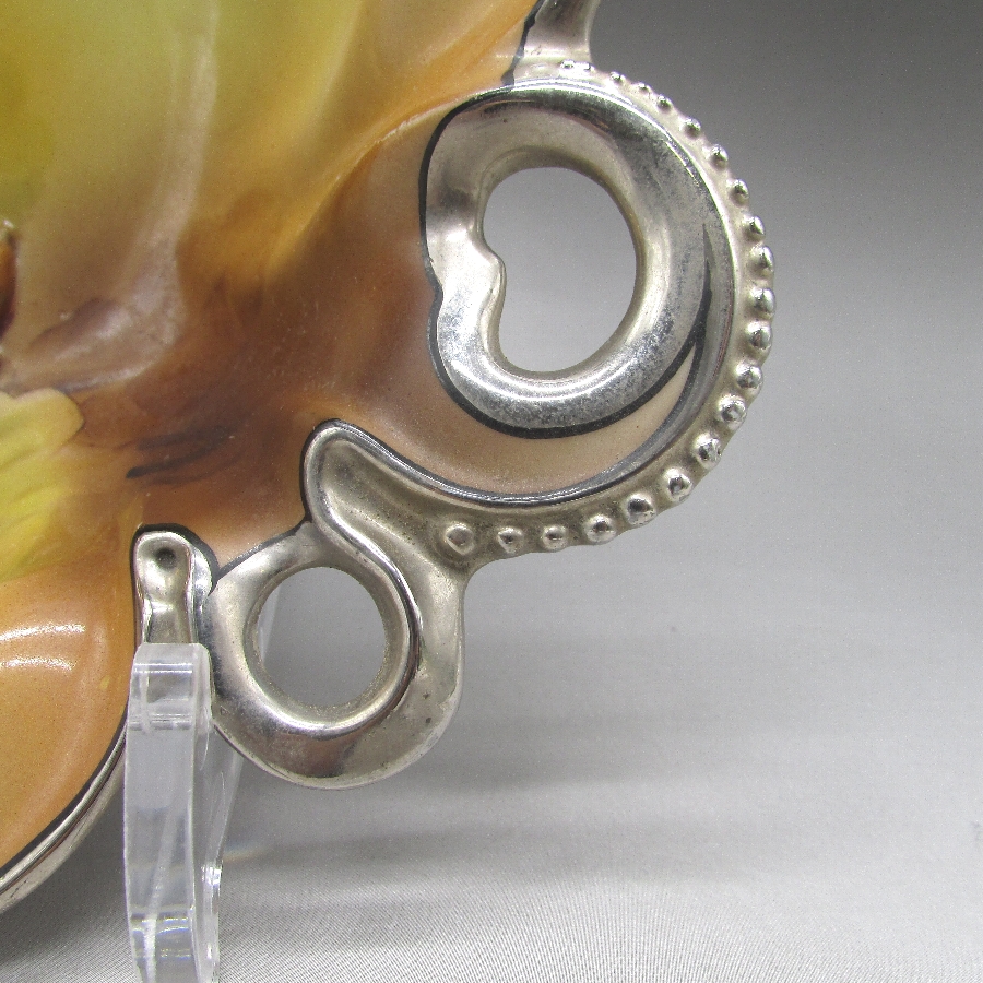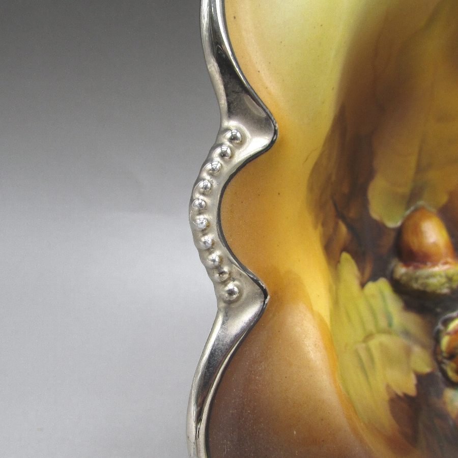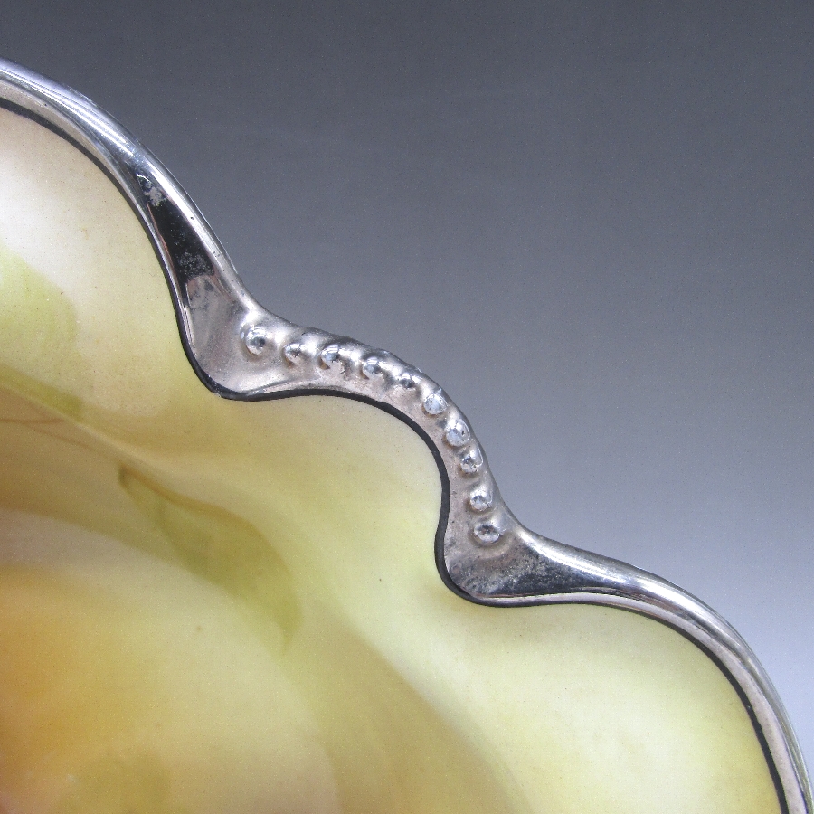 オールドノリタケのナッツ文ボウルです。1921年頃~1941年頃にアメリカに輸出され、約100年の時を経て日本に里帰りしてきました。オールドノリタケは現在のノリタケカンパニーが明治末期から戦前までに製造したアンティーク陶磁器の総称です。豪華絢爛な西洋風絵付け陶磁器は海外で人気を博しました。近年では、約100年という長い歳月を経て日本に里帰りしてきたことで、わが国でも大変人気が高くなっており、美術工芸品として高い地位を確保しつつあります。