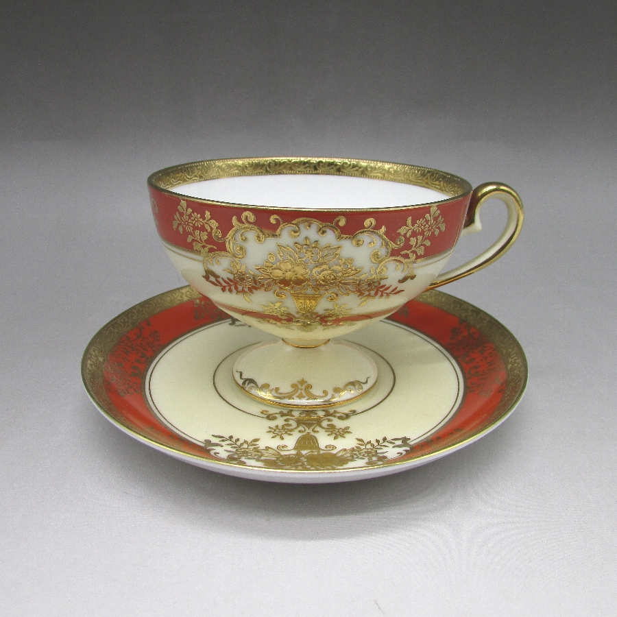 オールドノリタケ 金彩唐草文ペデスタルカップ&ソーサー