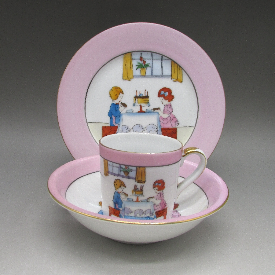 オールドノリタケのトイ3点セットです。1921年頃~1941年頃にアメリカに輸出され、約100年の時を経て日本に里帰りしてきました。オールドノリタケは現在のノリタケカンパニーが明治末期から戦前までに製造したアンティーク陶磁器の総称です。豪華絢爛な西洋風絵付け陶磁器は海外で人気を博しました。近年では、約100年という長い歳月を経て日本に里帰りしてきたことで、わが国でも大変人気が高くなっており、美術工芸品として高い地位を確保しつつあります。