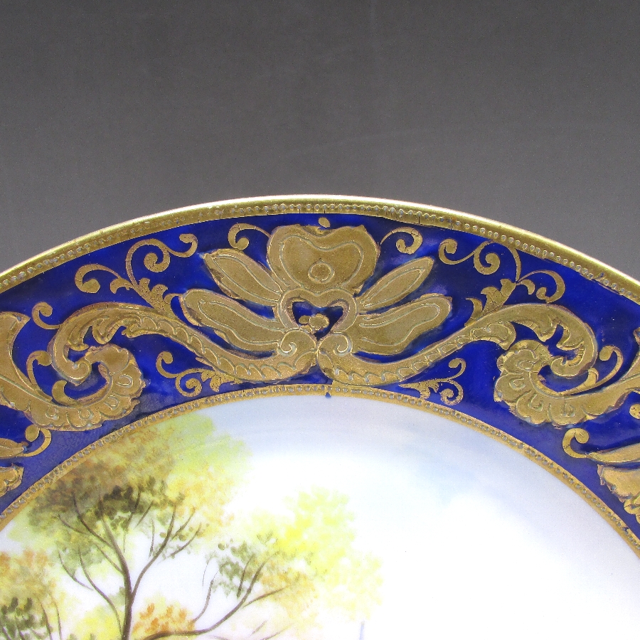 トップ > ラインナップ > オールドノリタケの作品一覧 Vol.012 > オールドノリタケ コバルト金盛り風景文皿