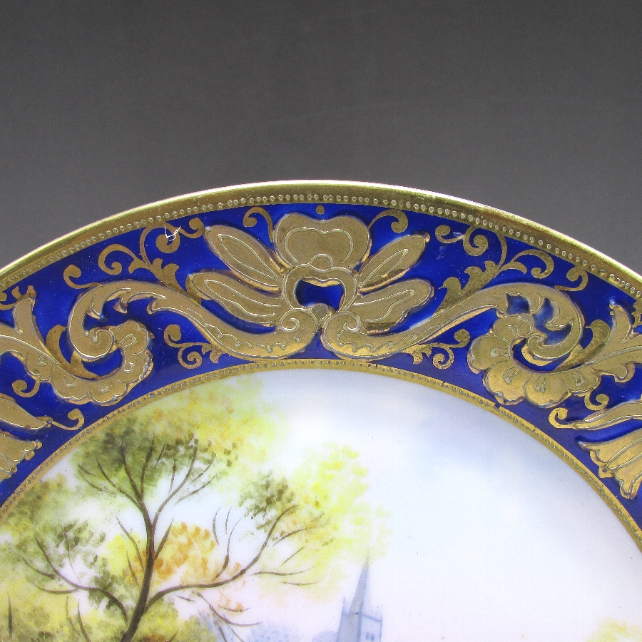 - 名称 オールドノリタケ コバルト金盛り風景文皿