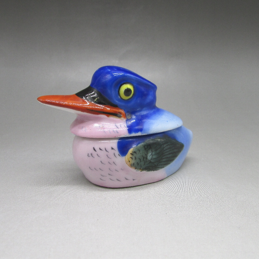 オールドノリタケのアヒル形コンディメントセットです。1924年頃~1935年頃にアメリカに輸出され、約100年の時を経て日本に里帰りしてきました。オールドノリタケは現在のノリタケカンパニーが明治末期から戦前までに製造したアンティーク陶磁器の総称です。豪華絢爛な西洋風絵付け陶磁器は海外で人気を博しました。近年では、約100年という長い歳月を経て日本に里帰りしてきたことで、わが国でも大変人気が高くなっており、美術工芸品として高い地位を確保しつつあります。