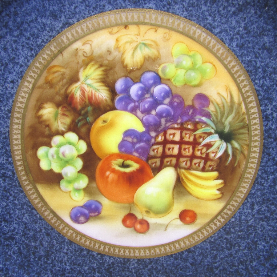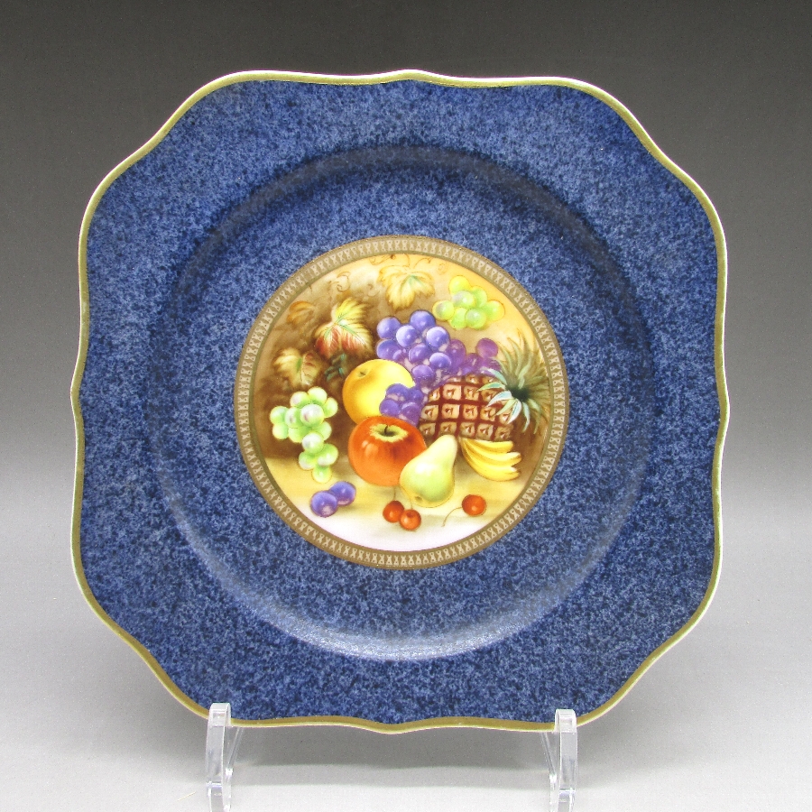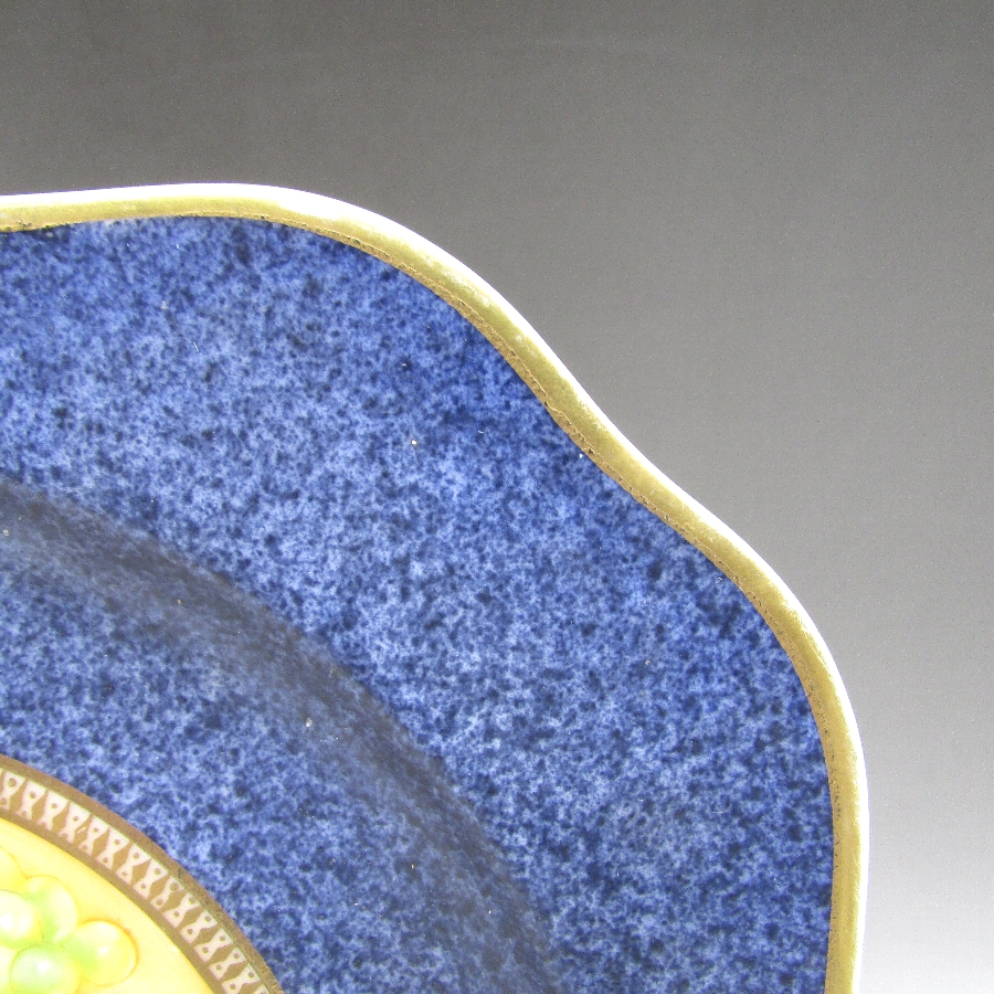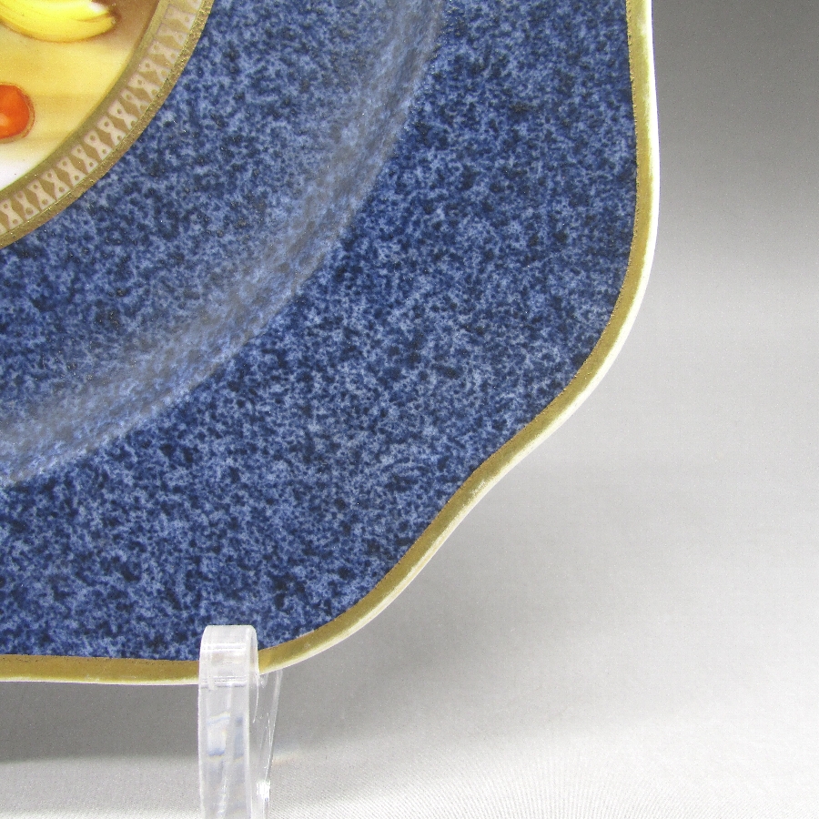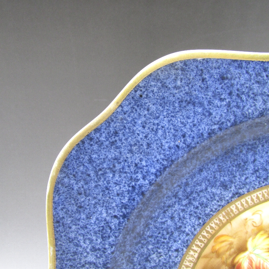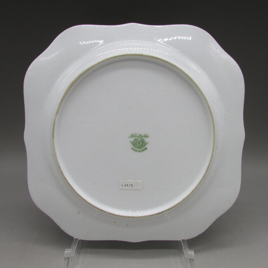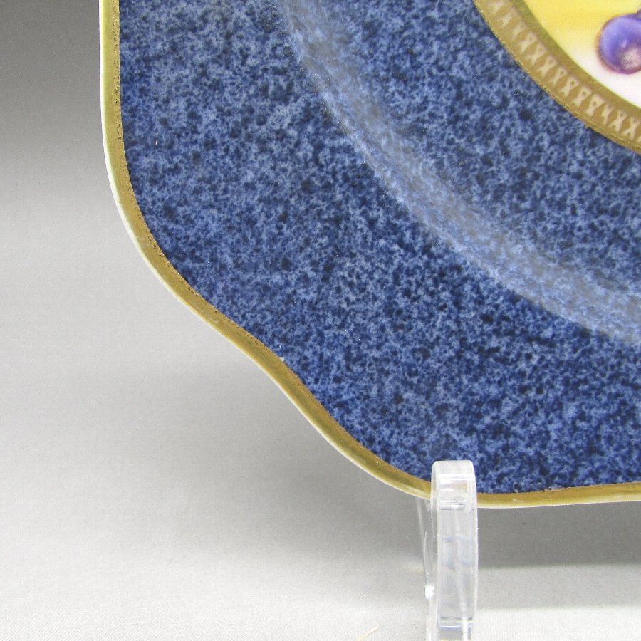 オールドノリタケの果物文スクエアプレートです。1930年頃~1941年頃にオーストラリアに輸出され、約100年の時を経て日本に里帰りしてきました。オールドノリタケは現在のノリタケカンパニーが明治末期から戦前までに製造したアンティーク陶磁器の総称です。豪華絢爛な西洋風絵付け陶磁器は海外で人気を博しました。近年では、約100年という長い歳月を経て日本に里帰りしてきたことで、わが国でも大変人気が高くなっており、美術工芸品として高い地位を確保しつつあります。