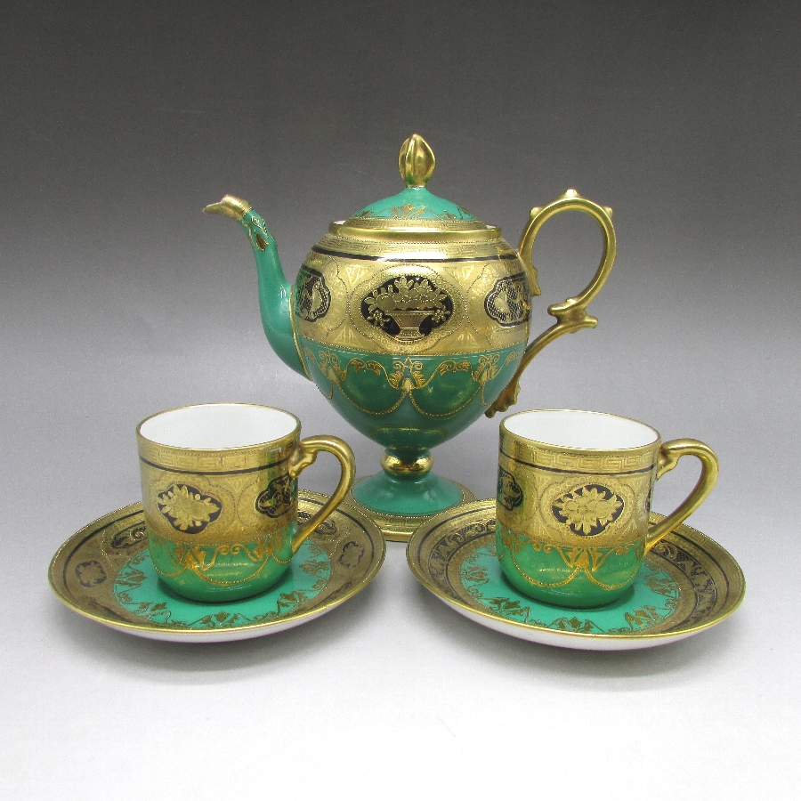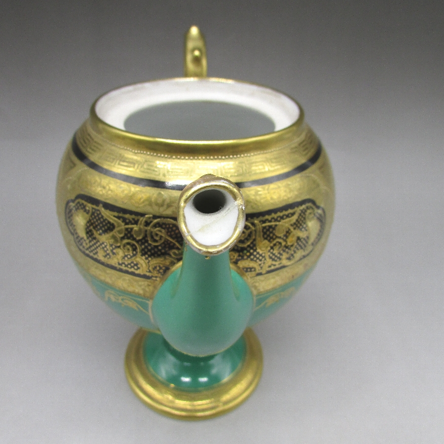 オールドノリタケ 金盛り唐草文ティーポット&カップ2客
