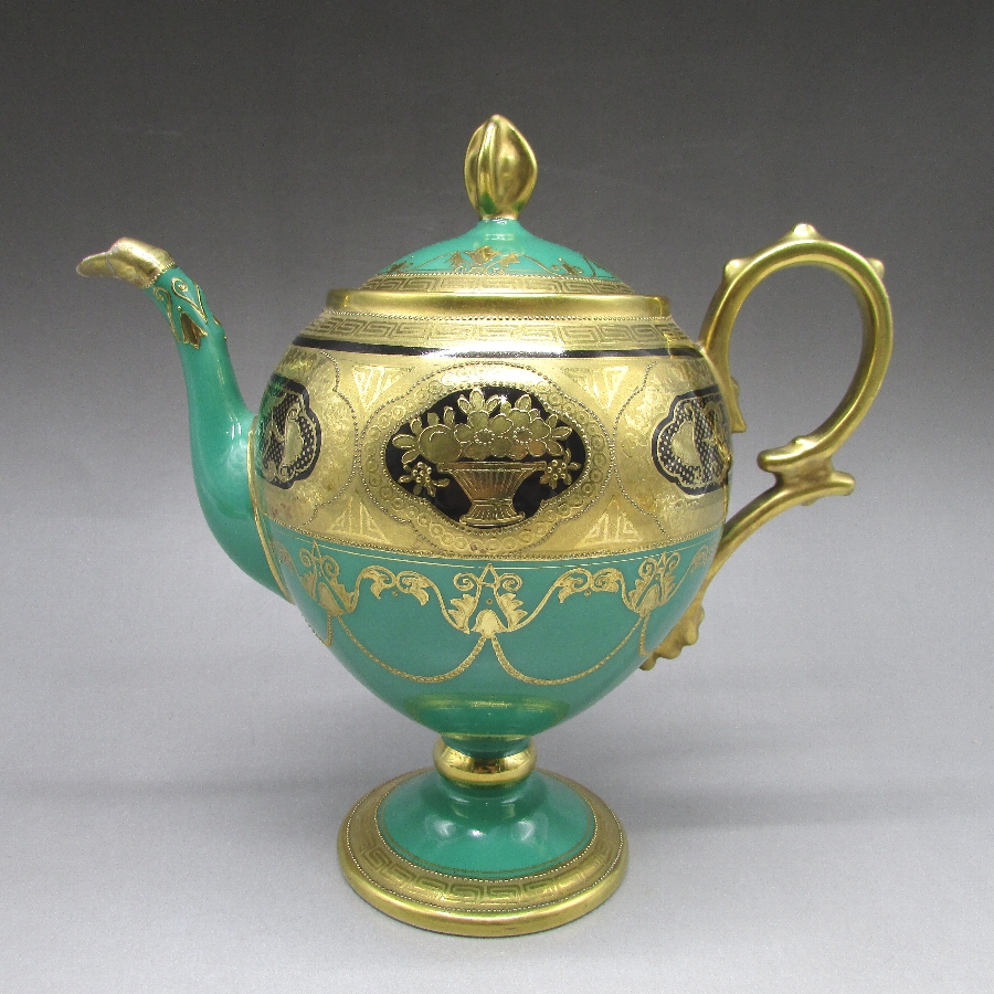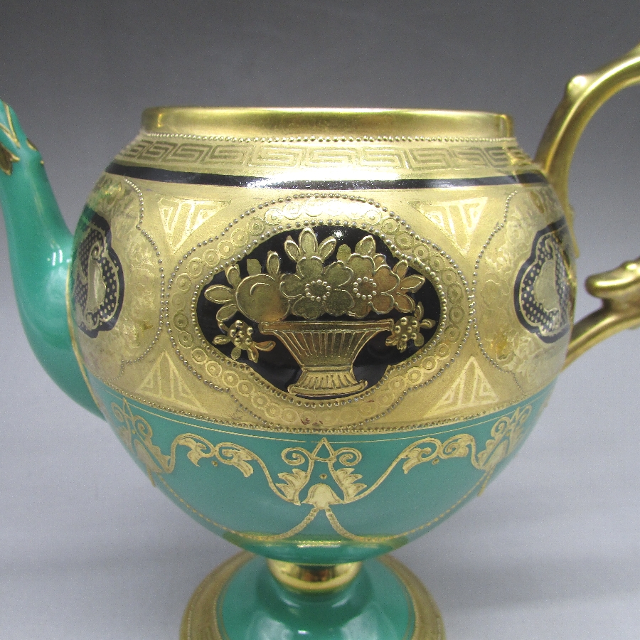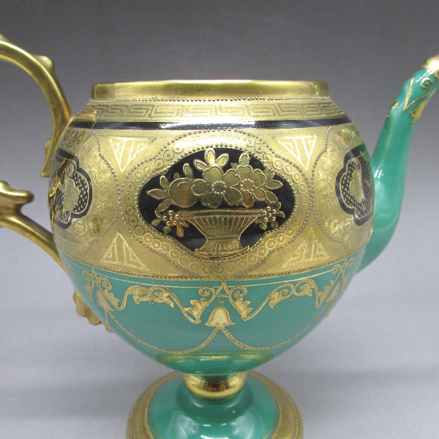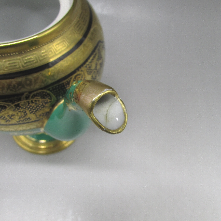 名称 オールドノリタケ 金盛り唐草文ティーポット&カップ2客