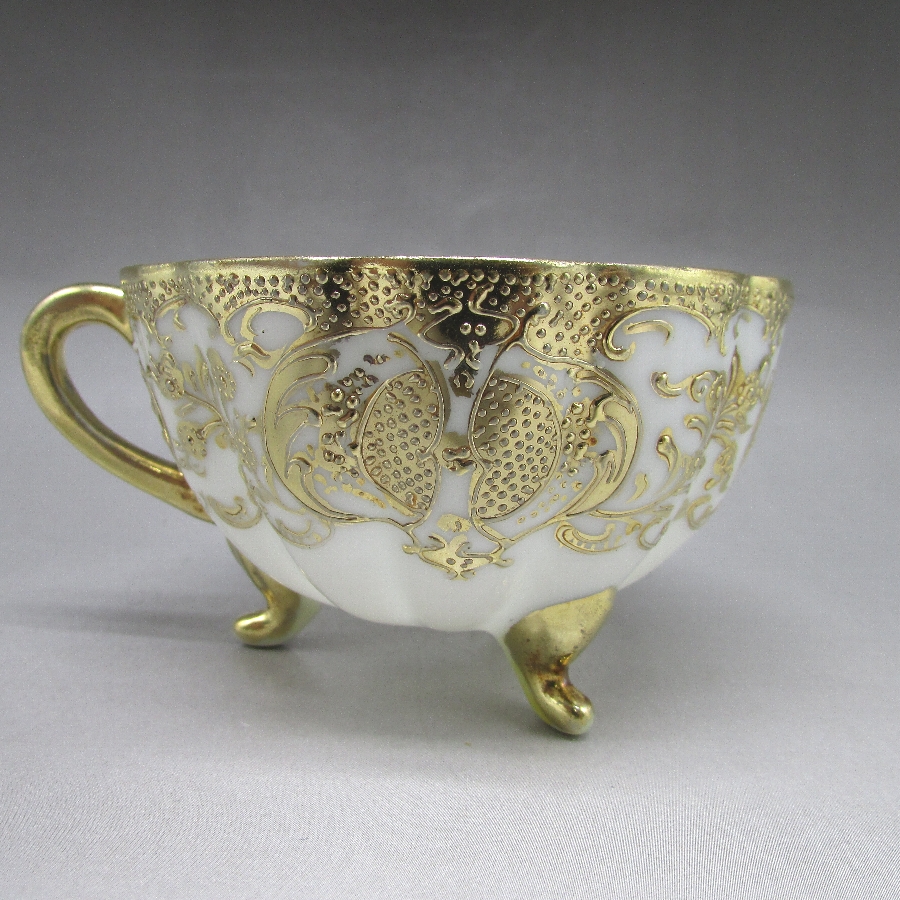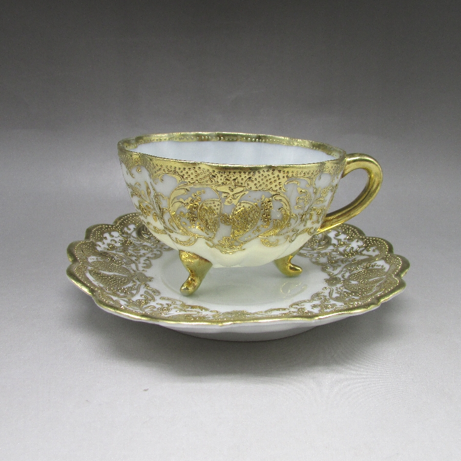 オールドノリタケの金盛り唐草文足付カップ&ソーサーの作品説明