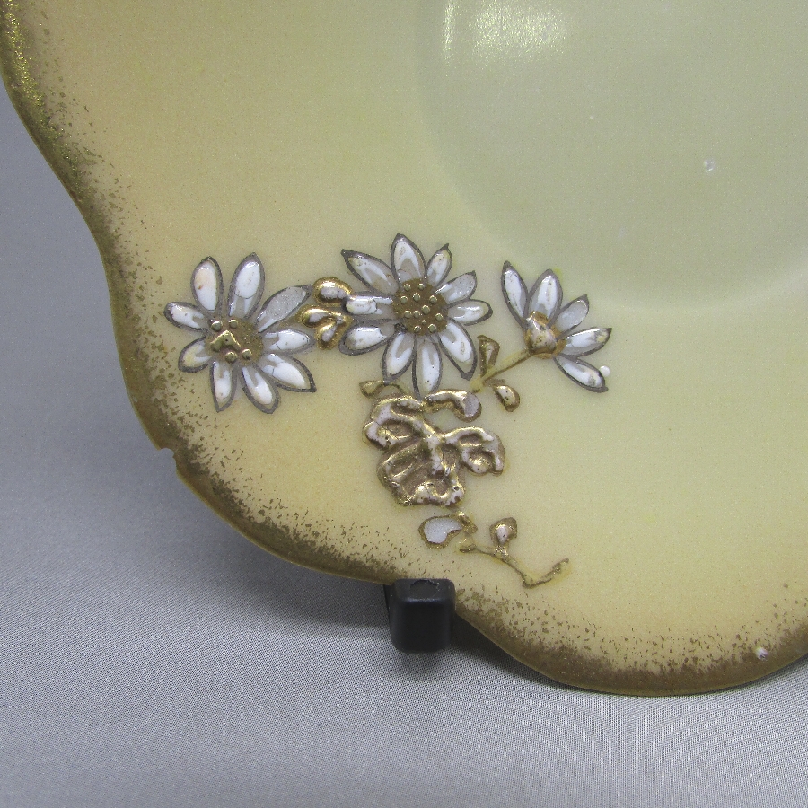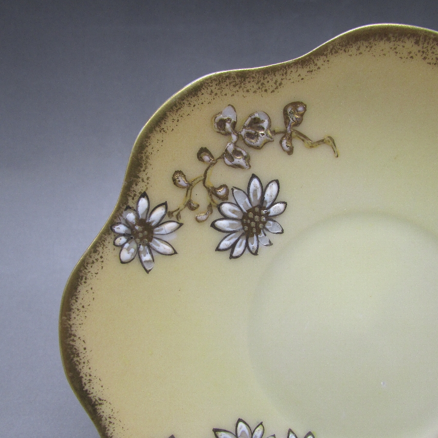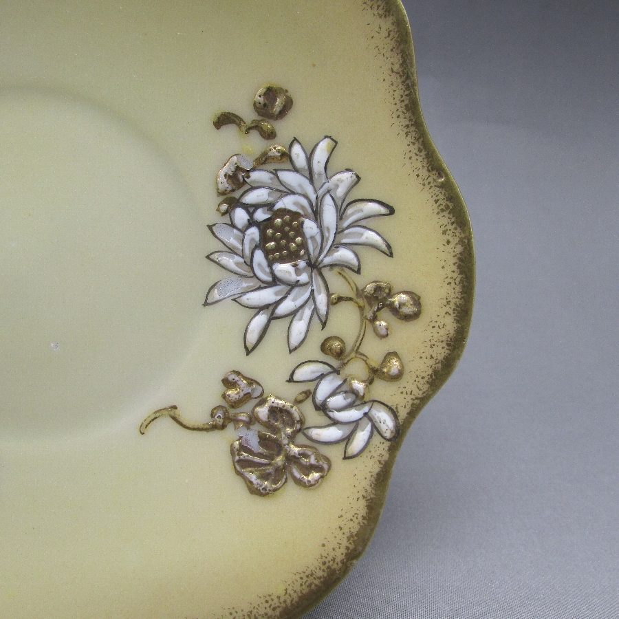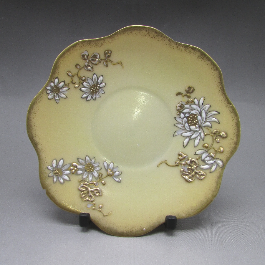 加藤春光とは瀬戸・南新谷で創業した瀬戸焼の名工です。初代・春光【生没年不詳】は1875年に開窯し、瀬戸最大手の白生地工場として1882年には森村組と取引を開始しており、専属契約を結んでいます。西郷、井口、藤村などの森村組専属工場への生地の供給をしていました。オールドノリタケの初期のメープルリーフ印を持つ作品の中には、生地が春光製であるものも少なくないと思われます。また、自ら春光という染付け銘を持ち純日本風の画風で知られる絵付け工場でもあり、積極的に海外輸出製品を製造し内国勧業博覧会などで数々の賞を受賞しています。2代・春光【1881-1958年】は、20歳前後に名古屋の教会の宣教師に英語を習った為、英語をはじめとして数か国語に通じていたと言われ、博学多識で西洋文献などを研究して、鋳込成形法を日本陶器に先立って瀬戸にもたらし、多くの製法特許を取得し窯業技術の改良に大きな貢献と足跡を残した人物です。