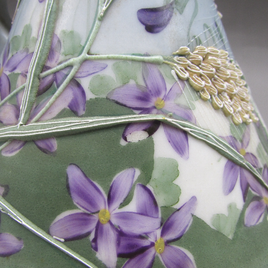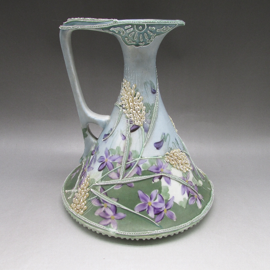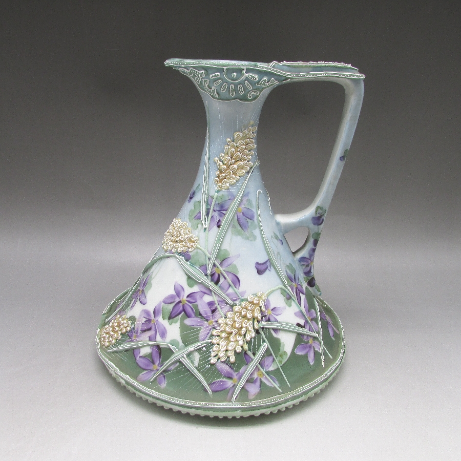 オールド・ニッポンの稲穂盛上スミレ文水差です。明治・大正時代に欧米に輸出され、約100年の時を経て日本に里帰りしてきました。「The Collector’s Encyclopedia